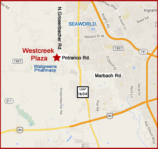Corner Location with 4-way Traffic Light: Potranco Road and Grosenbacher Road with Walgreens Pharmacy across the street.